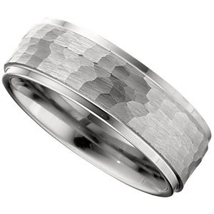 8.3 MM Dura Tungsten Ridged Band with Bark Finish Inlay Size 11 A comfort fit wedding band made from Tungsten. Tungsten always look new, bright and shiny. Tungsten offers what's reffered to like a permanent polish, meaning that it doesn't need to be re-polished. Having this like a wedding band that's scratch resistant can be a great deal of advantage.